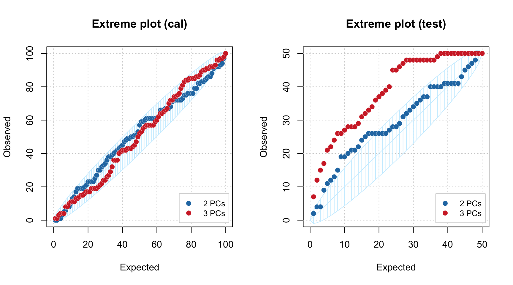 plotExtreme(m, comp = 2:3, main = "Extreme plot (cal)")