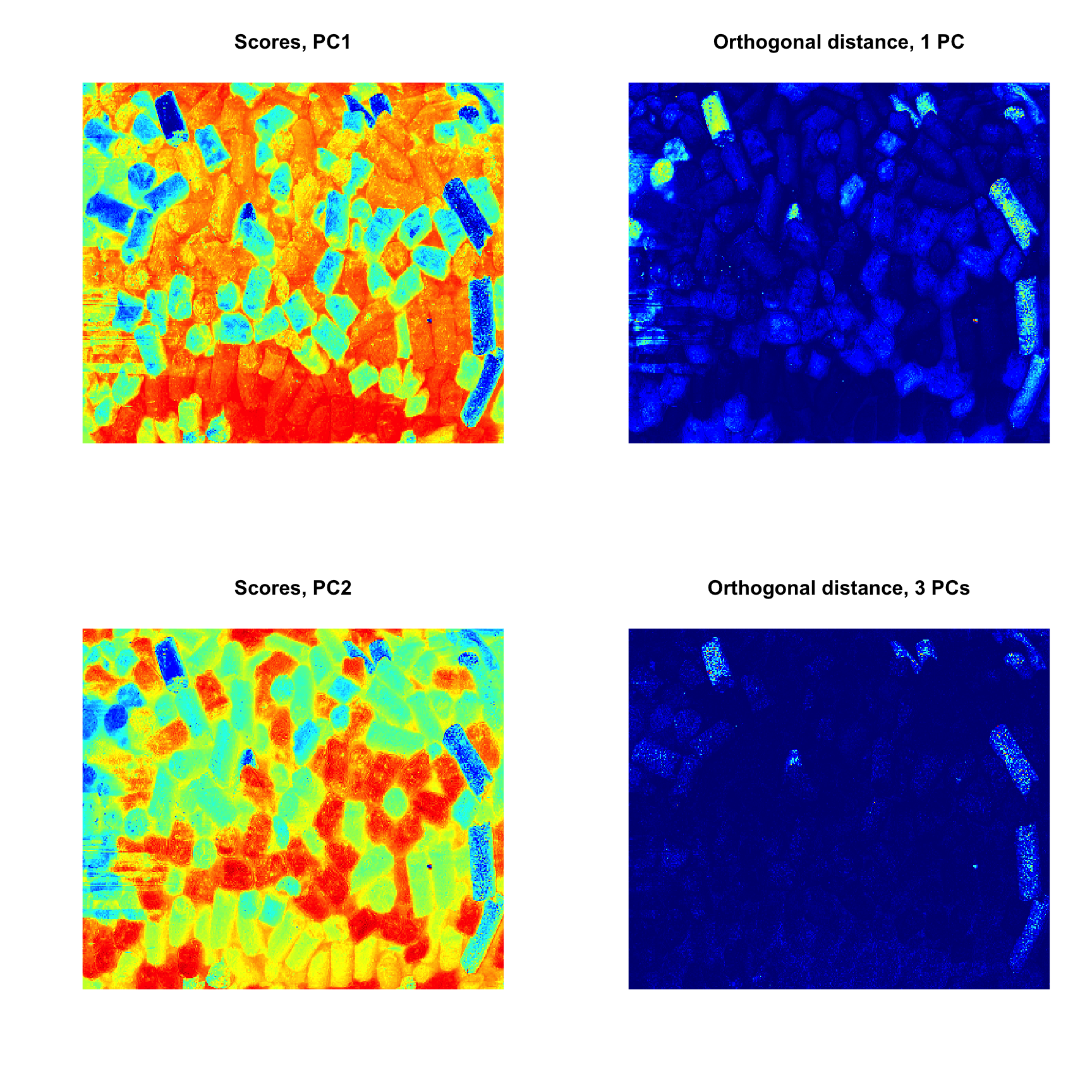 imshow(m$res$cal$Q, 3, main = "Orthogonal distance, 3 PCs")