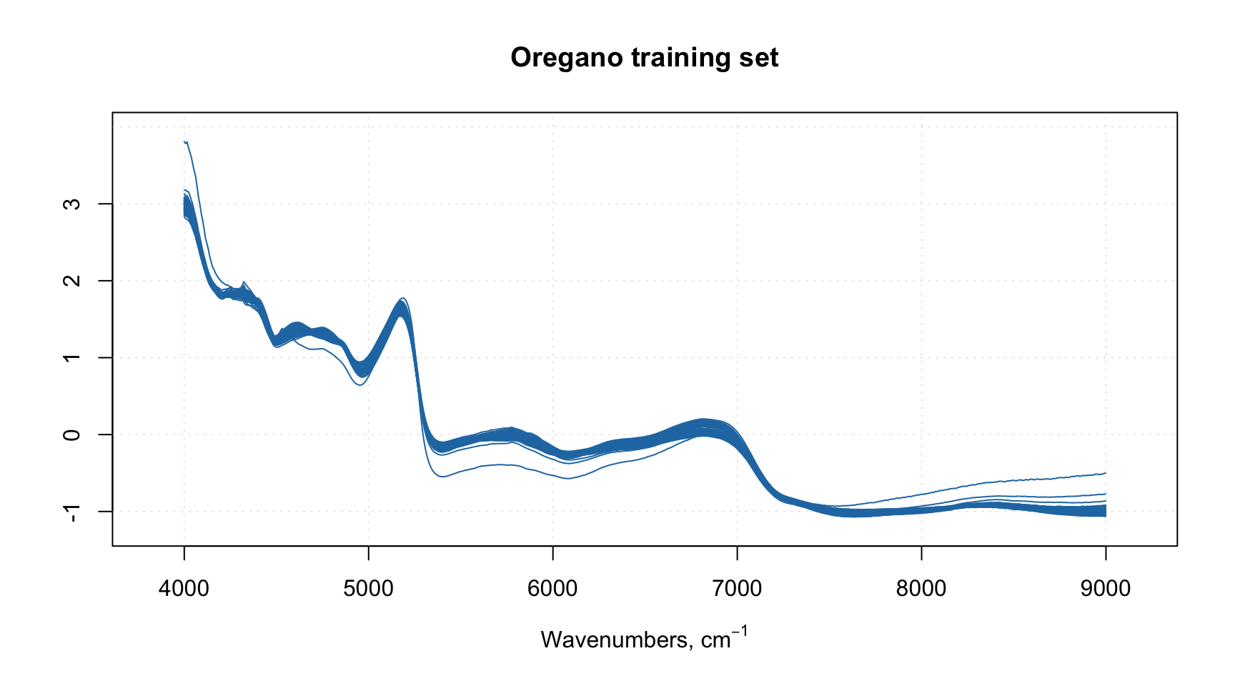 mdaplot(xc, type = "l", main = "Oregano training set")