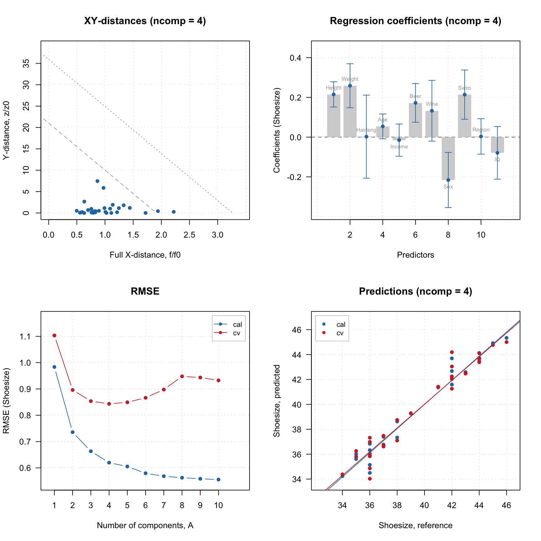 m = pls(Xc, yc, 4, scale = TRUE, cv = 1)