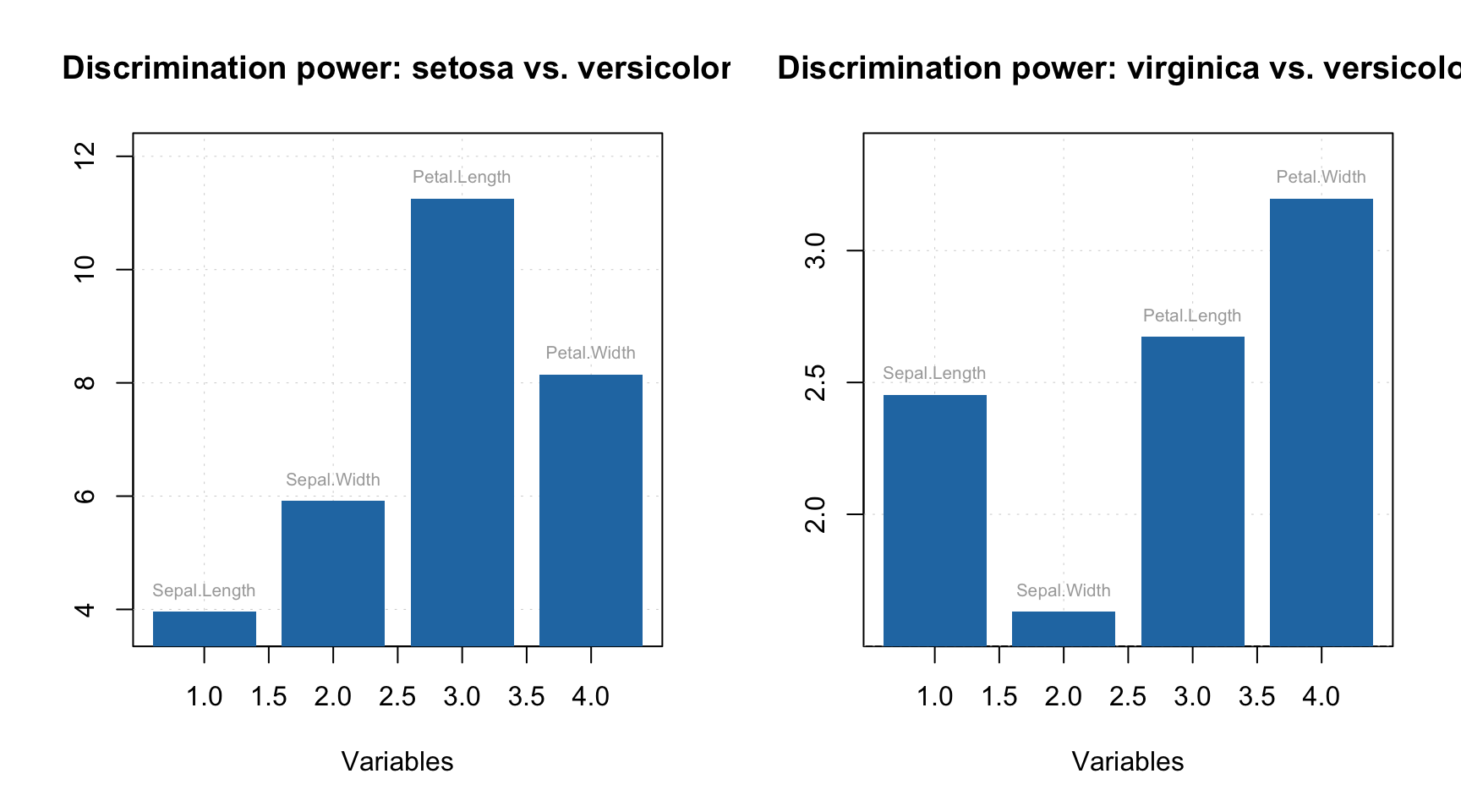 Several SIMCA models can be combined to a special object simcam, which is used to make a multiclass classification. Besides this, it also allows calculating distance between individual models and a discrimination power — importance of variables to discriminate between any two classes. Let’s see how it works.
